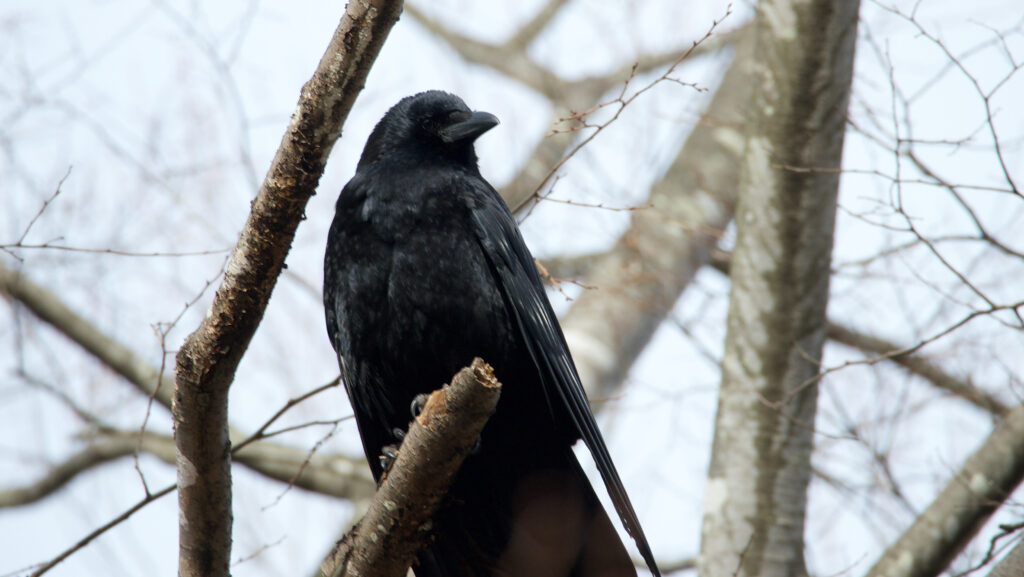 The fluffy feathers on the top of the crow’s head also showed up in that front-facing shot, and because it seemed to be looking right at me, I think it ended up with a certain charm.